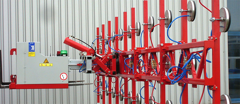 Der OKTOPUS® IT-BT 1000 ist geeignet zum Handling von Sandwichelementen. Die zu verarbeitenden Elemente müssen an den Saugflächen luftundurchlässig sein, eine ebene und saubere Oberfläche aufweisen und dürfen nicht mit einer Schutzfolie belegt sein.