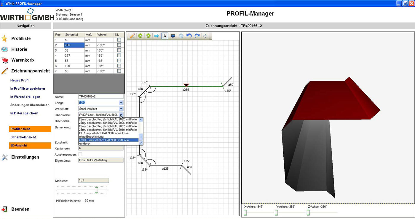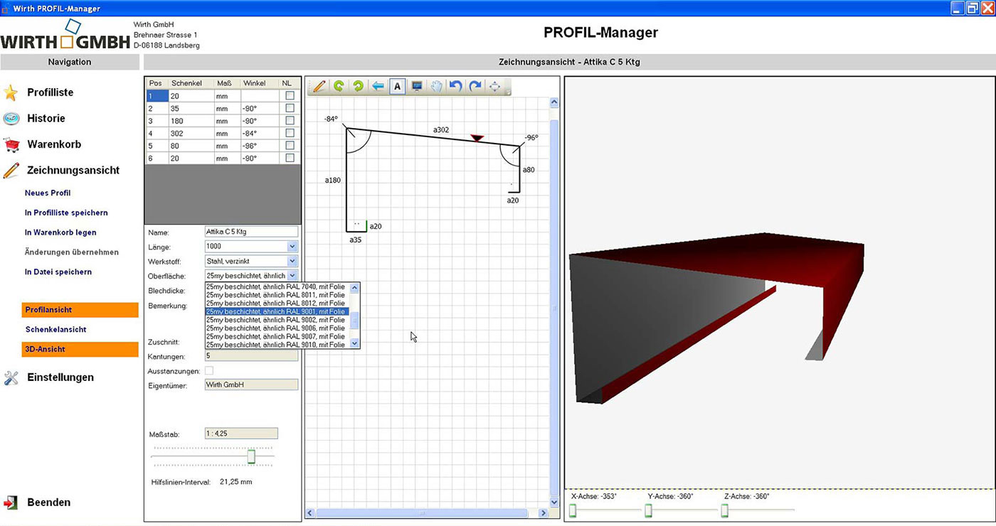 Unseren Kunden stellen wir den WIRTH PROFIL-Manager kostenfrei zur Verfügung.