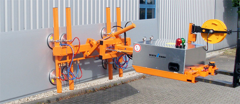 Using the tried and tested Wirth round and oval suction pads you can transport and install almost every standard sandwich element and many corrugated sheets with the OKTOPUS® PANEL-Jack IT-B. The suction areas of the elements to be lifted must be air-impermeable, have to have an even and clean surface and must not be covered with protective film.