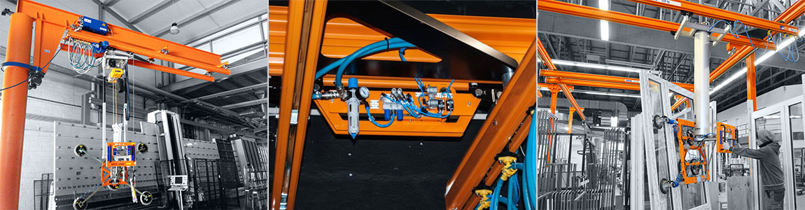 X-Y lightweight crane systems and Column- and wall-mounted slewing cranes from Wirth are so called workstation cranes. They are adequate for handling changing production requirements and working environments and can be adjusted to those.